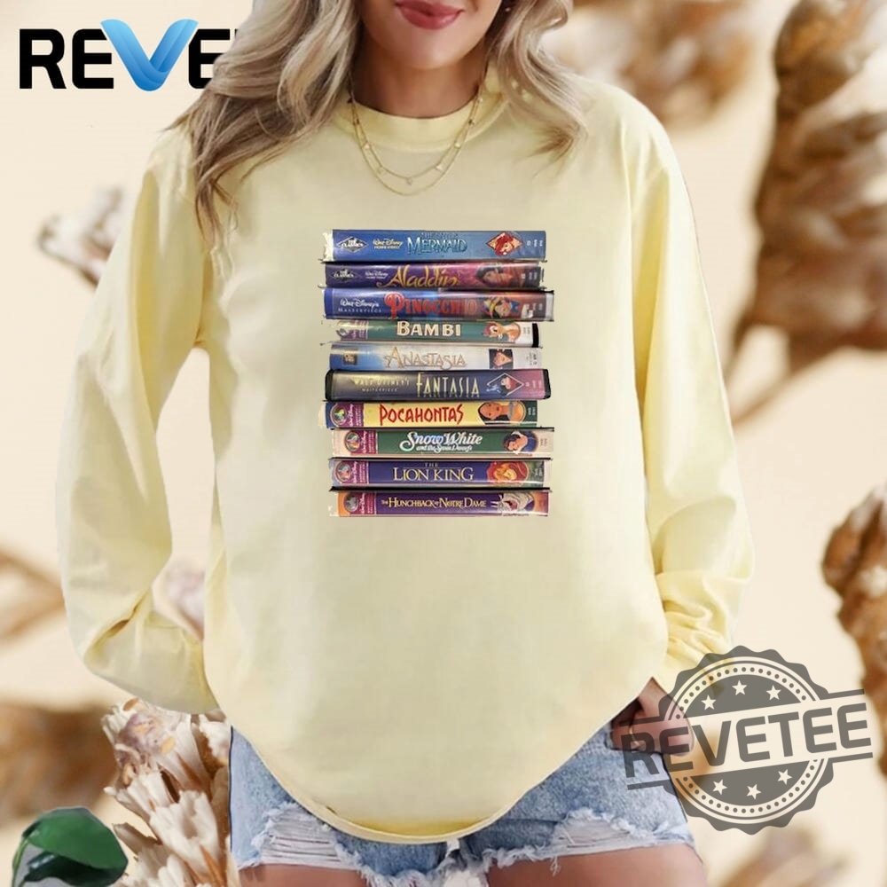 Classic Lion King Little Mermaid Snow White More Movie Stacked Vhs Tapes T Shirt