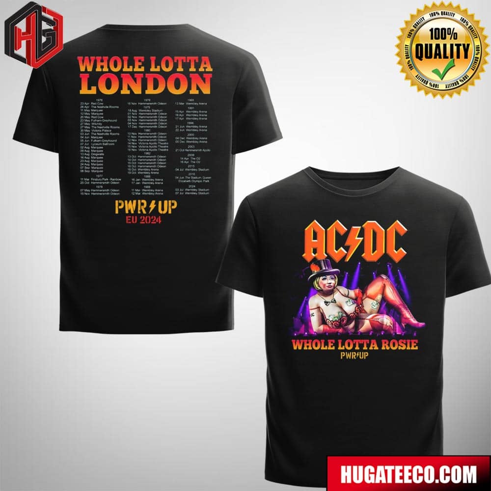 Ac Dc Whole Lotta Rosie Pwr Up London 2024 Tour Schedule List Two Sides T-shirt