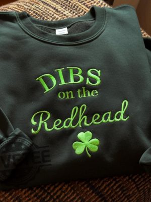 Embroidered Dibs On The Redhead T Shirt Sweatshirt Hoodie Distressed Shamrock Shirts Vintage Green Irish Tshirt Gifts For St Patricks Day 2025