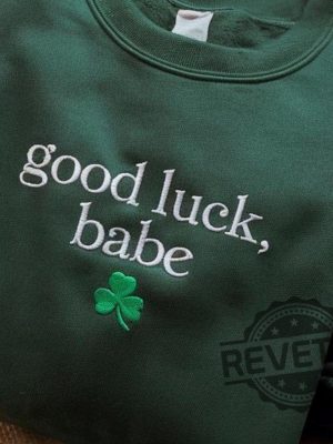 Embroidered Good Luck Babe T Shirt Sweatshirt Hoodie Cute Shamrock Vintage Crewneck St Patricks Day 2025 Unique 2