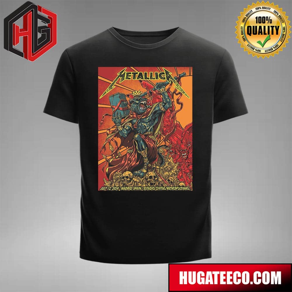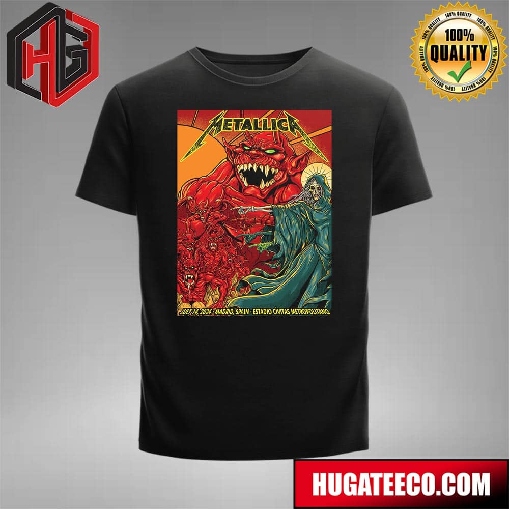 Metallica M72 World Tour 2024 No Repeat Weekend Merch Poster In Madrid Spain At Estadio Civitas Metropolitano On Juy 14 2024 T-shirt