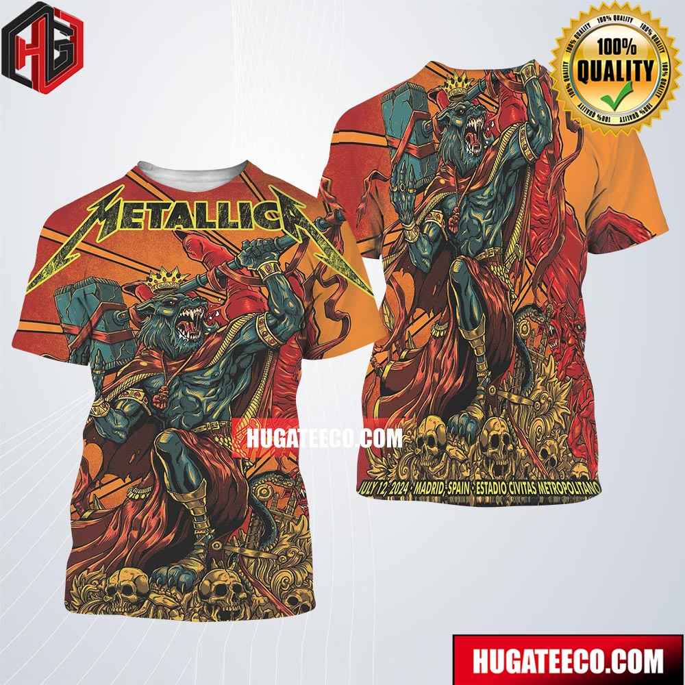 Metallica M72 World Tour 2024 No Repeat Weekend Merch Poster In Madrid Spain At Estadio Civitas Metropolitano On Juy 14 2024 Merchandise Two Sides T-s