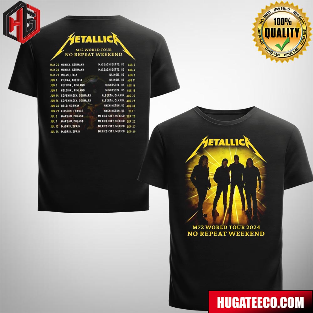 Metallica M72 World Tour 2024 No Repeat Weekend Schedule List Date Two Sides T-shirt