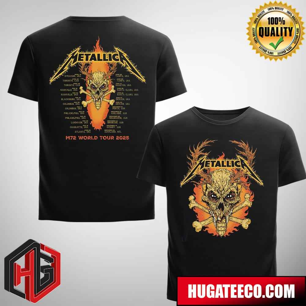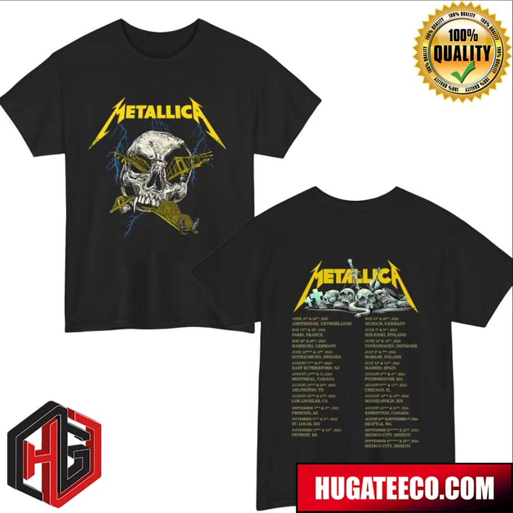 Metallica M72 World Tour 2024 Schedule List Two Sides Merchandise T-shirt