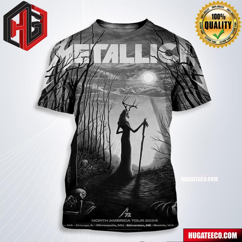 Metallica Merchandise Pop-up Shop Poster For Edmonton Ab On August 22 M72 North American Tour 2024 All Over Prin Shirt